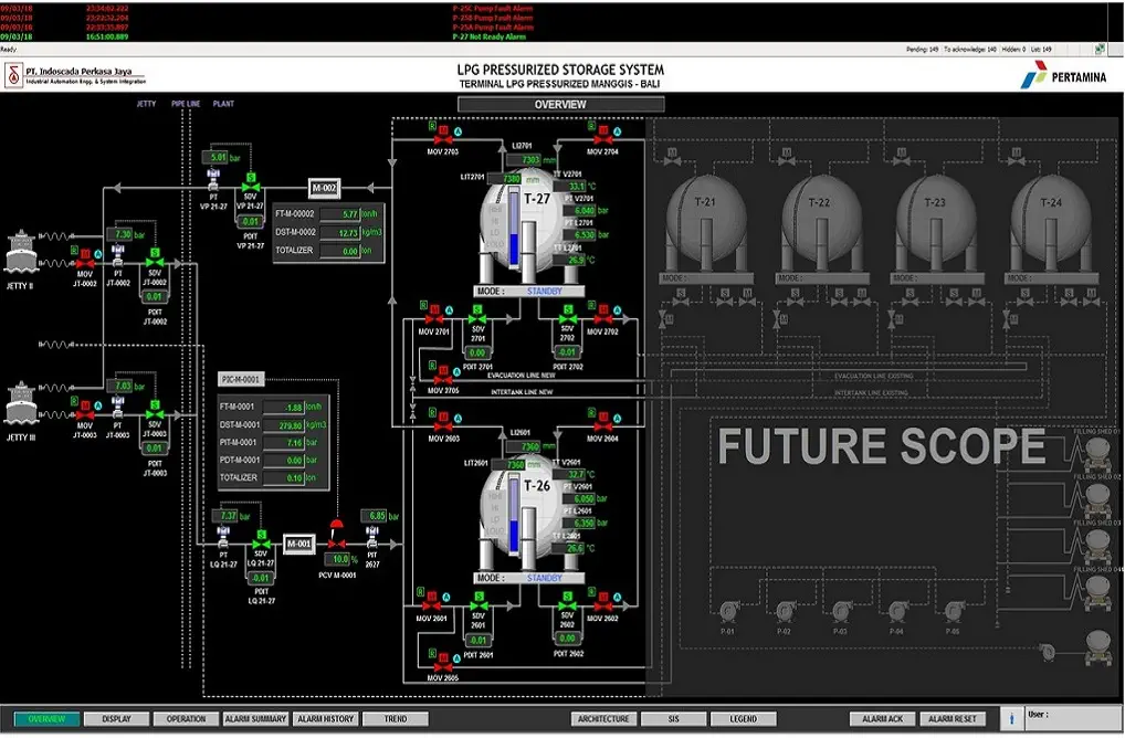 •SIEMENS Simatic TIA Portal, •WinCC Professional •S7 OPC•Modbus Serial and TCP/IP Protocol, •Programming for MOV Operation for Transfer of LPG from Jetty to Storage Tanks, for Inter Tanks operation, to Filling Station, for Evacuation etc.